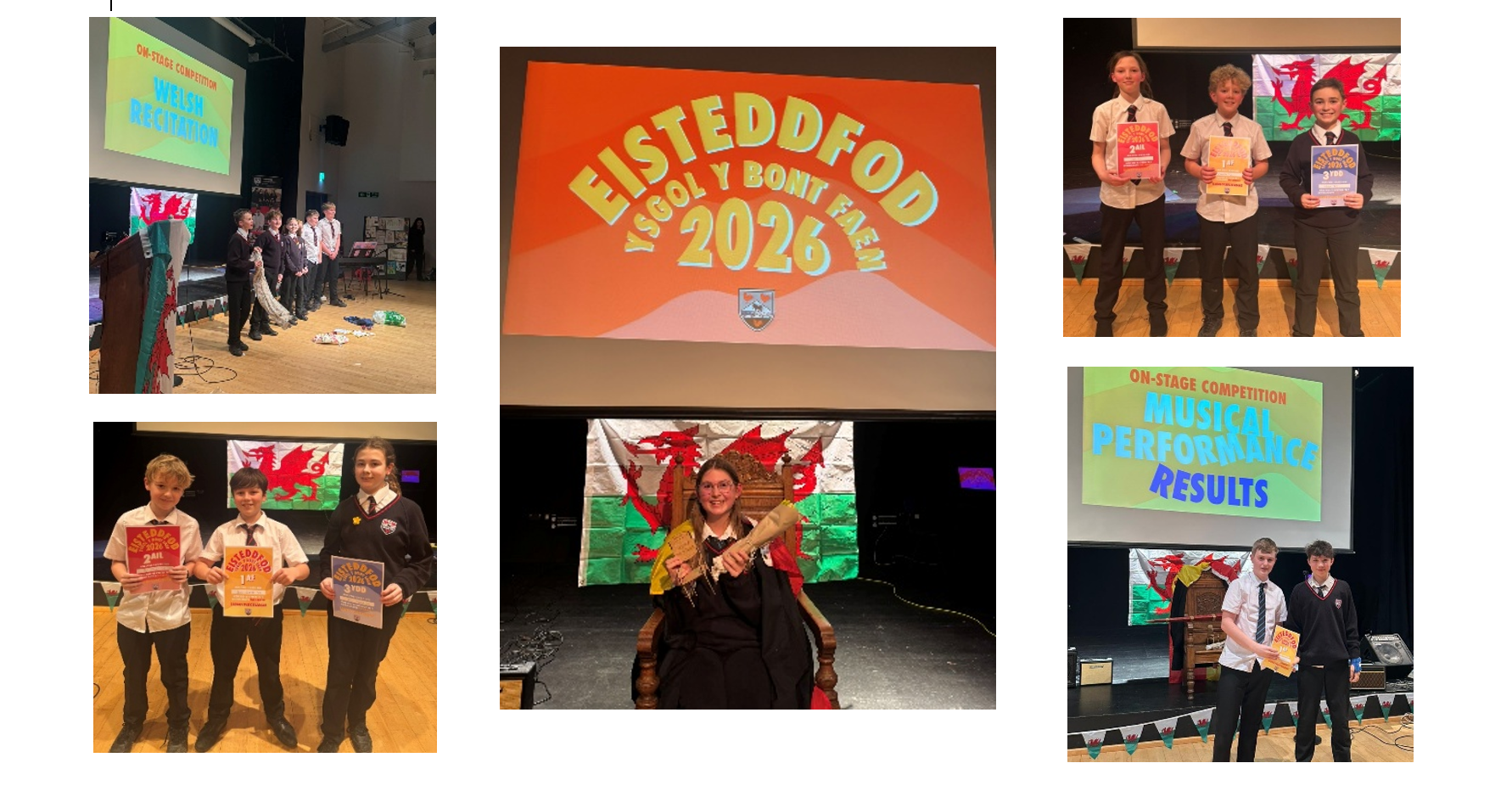 On Friday the 27 February, to celebrate St David’s Day, we held our annual Eisteddfod for Lower School, Year 7 and Year 8 pupils. The Eisteddfod is a special event that recognises and celebrates both Welsh language and culture as well as the huge amount of talent here at Ysgol y Bont Faen.